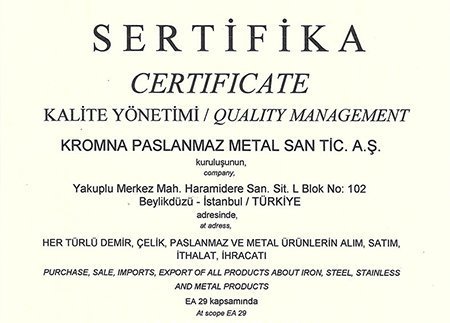 Kromna Paslanmaz Metal San. Tic. A.Ş. ülkemizde 30 senelik tecrübe, bilgi ve birikimimizle, son teknoloji makine parkuruyla paslanmaz imalatlarda sanayimizin hizmetindedir.